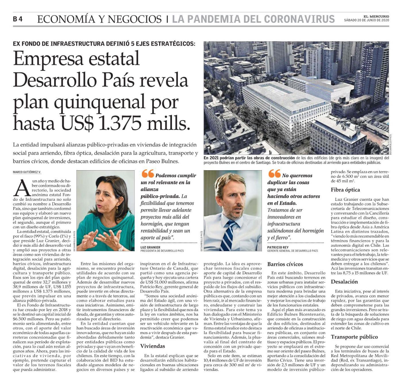La entidad impulsará alianzas público-privadas en viviendas de integración social para arriendo, fibra óptica, desalación...